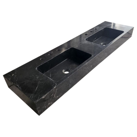 TCSC | Toros Black Marble Double Sink Wall-mount Bathroom Sink Polished (W)18" (L)60" (H)6"
