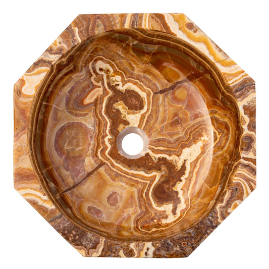 TCSC | Brown Onyx Translucent Octagon Natural Stone Above Vanity Bathroom Sink Polished (D)16" (H)5"