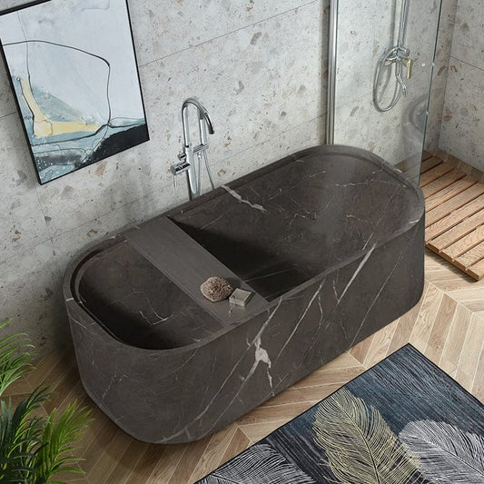 TCSC | New York Marble Bathtub Hand-carved from Solid Marble Block (W)32" (L)73" (H)24"