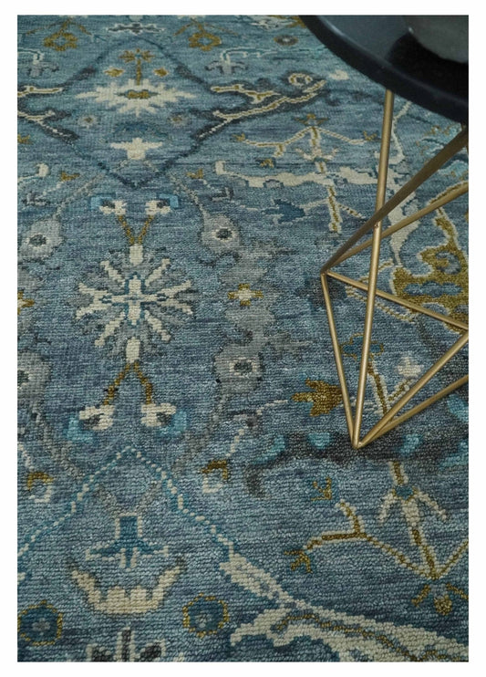 Custom Made Blue and Ivory Antique Style Hand knotted Oriental Oushak wool Area Rug