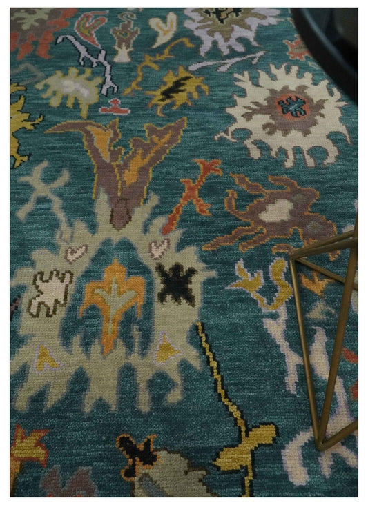 Custom Made Green, Gray and Peach Colorful Hand knotted Traditional Oushak wool Area Rug
