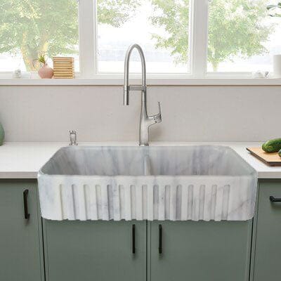 TCSC | Carrara White Marble Farmhouse Apron Kitchen Double Sink (W)18" (L)36" (H)8"
