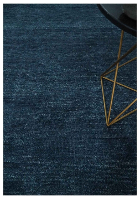 Custom Made Midnight blue Solid Hand knotted Modern wool Area Rug
