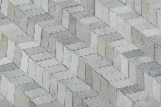 Genuine Leather Chevron Design Handmade Ivory and Silver Area Rug