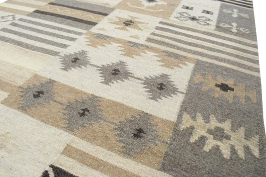 Dhurrie Rug, Beige Brown Tribal Pattern Rug