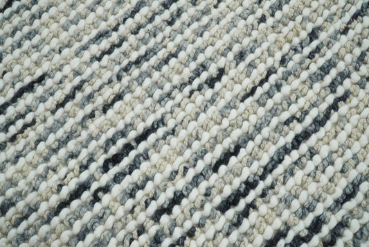 Custom Made Blue and Ivory Stripes Design Hand loom wool Area Rug