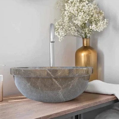 TCSC | Maya Gray Natural Stone Marble Above Vanity or Drop-in Bathroom Sink Polished