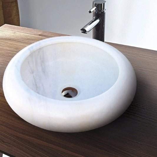 TCSC | Natural Stone Carrara White Marble Above Vanity Bathroom Sink Polished (D)15.5" (H)6"