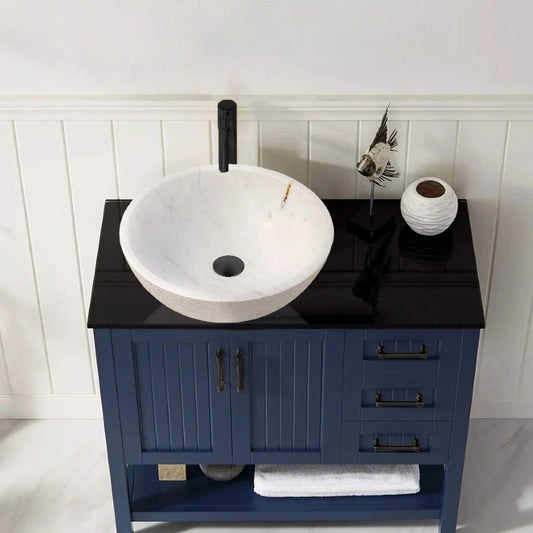 TCSC | Carrara White Marble Above Vanity Bathroom Vessel Sink Polished (D)16" (H)6"