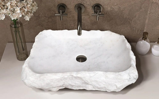 TCSC | Carrara Marble Rectangular Rustic Natural Stone Above Vanity Bathroom Sink