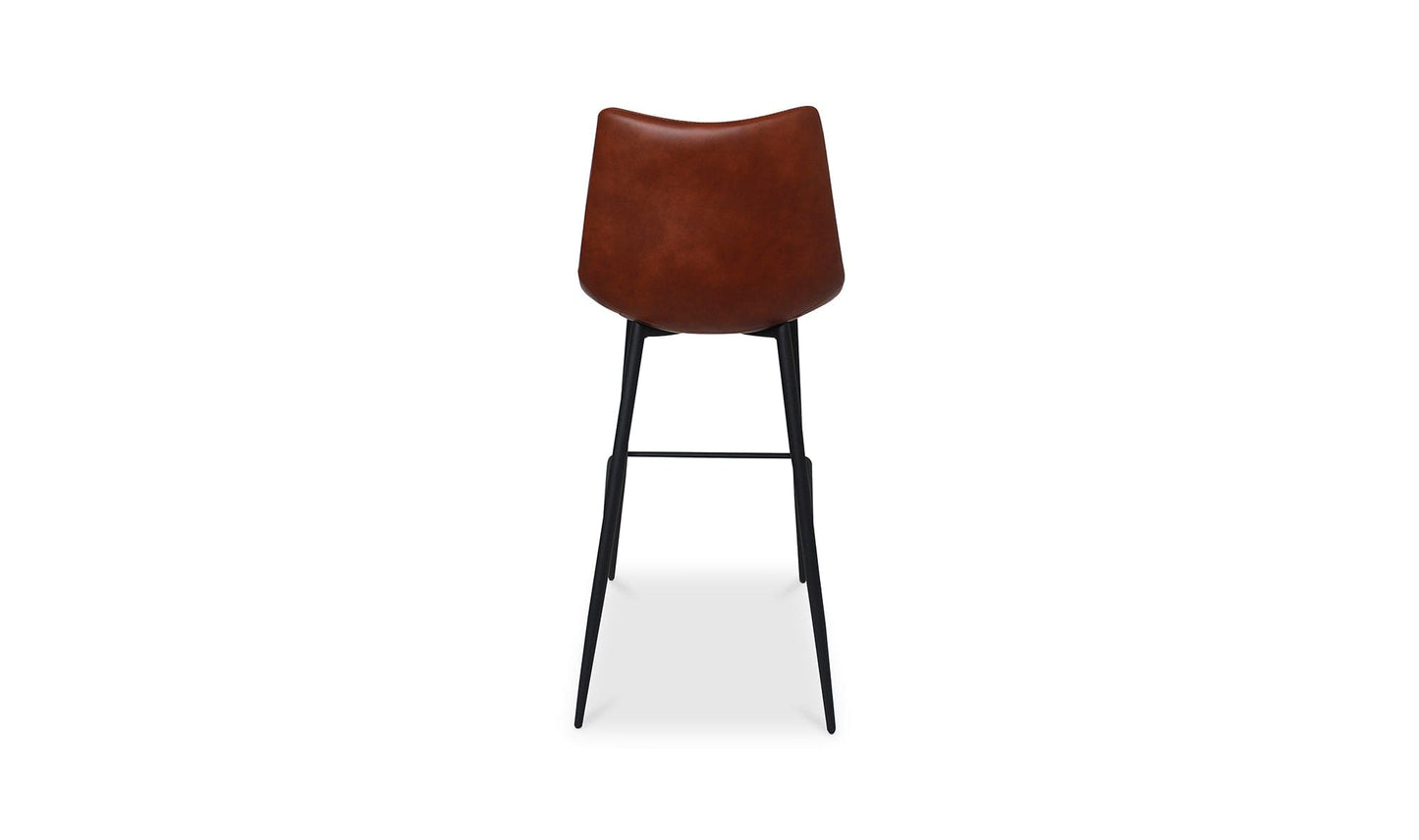 A contemporary bar stool that is as sleek as it is comfortable. The Alibi bar stool features striking vertical line stitches that add subtle detail to its monochromatic design. A soft vegan leather seat adds comfort and classic appeal.
