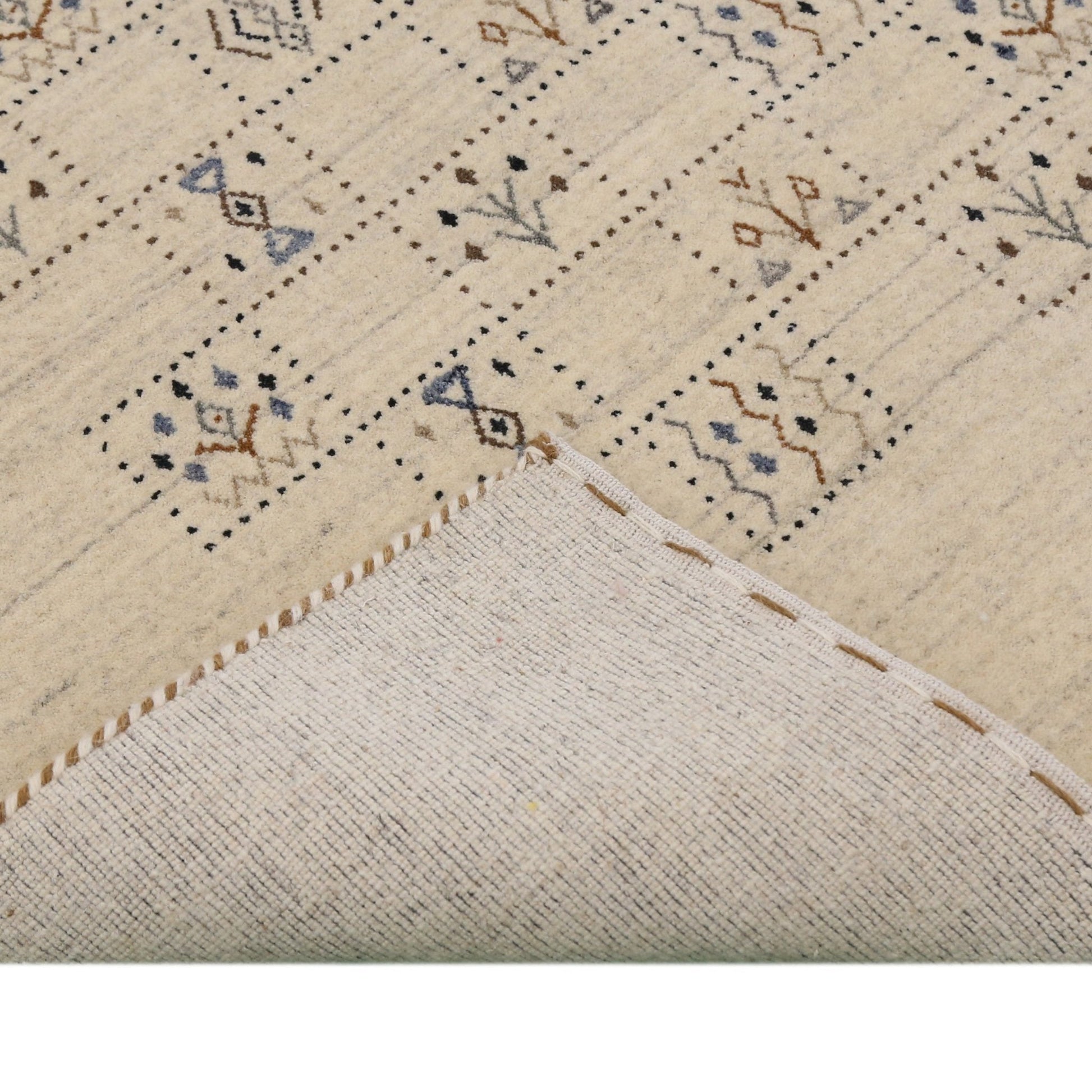 This Beige Tribal Design Hand Loomed Wool Area Rug combines traditional craftsmanship with durable wool fibers. Its intricate tribal patterns and soft beige hues add warmth and sophistication, making it ideal for enhancing living spaces with both texture and timeless style.