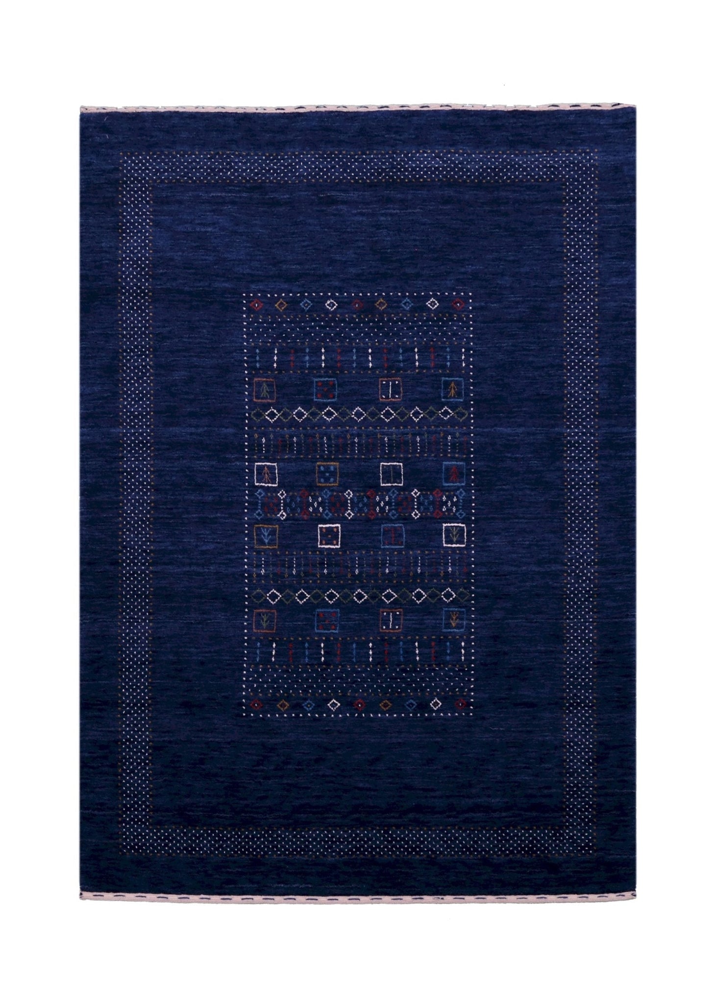 Blue Center Pattern Hand Loomed Wool Area Rug