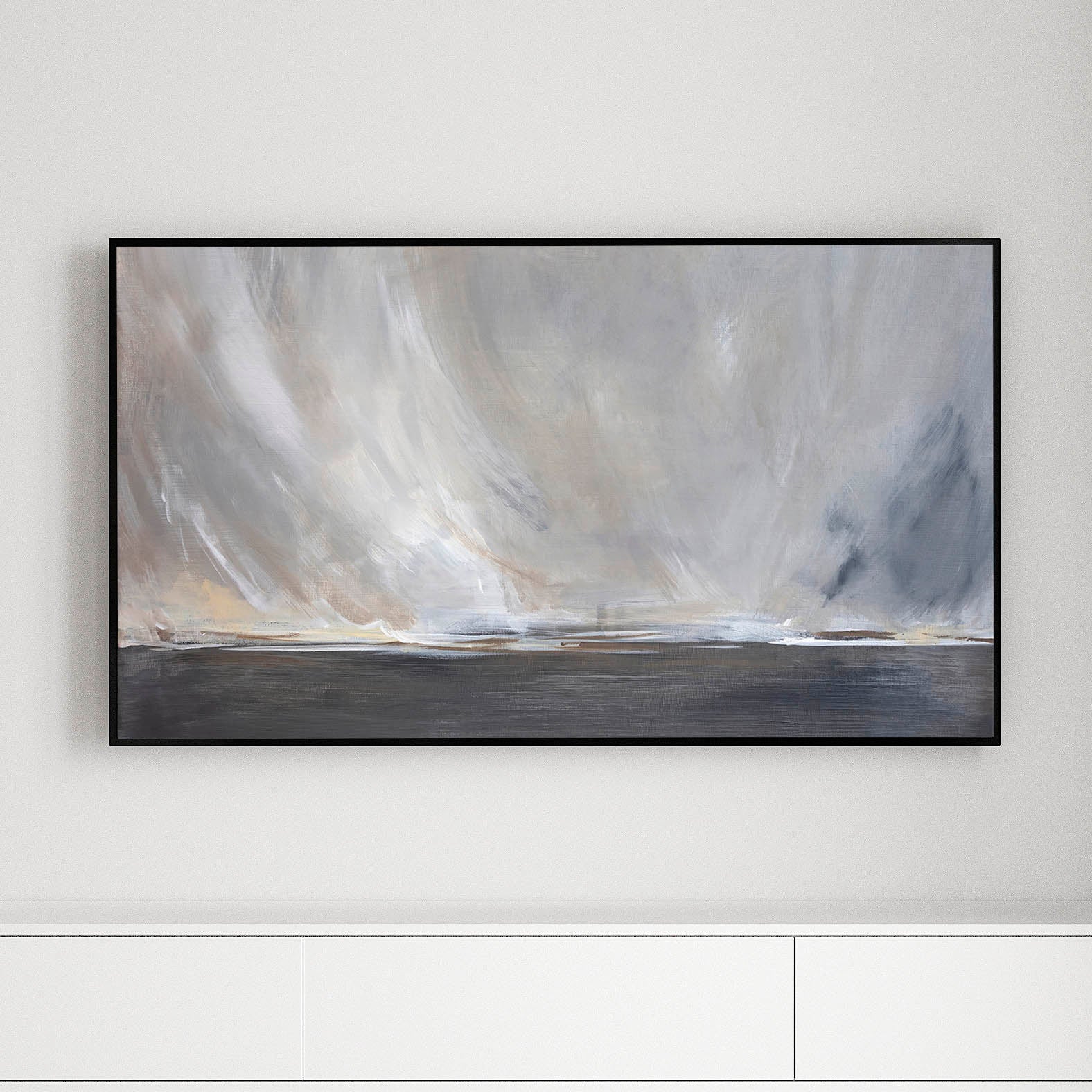 A study in movement and mood, Clay Horizon captures the quiet tension between earth and sky. Swirling layers of soft grays, weathered clay tones, and warm yellows create a sense of shifting light, evoking the fleeting beauty of a storm rolling over an open landscape. The horizon line, subtly defined, offers a moment of stillness amidst the expressive brushwork, grounding the composition in both calm and motion.
