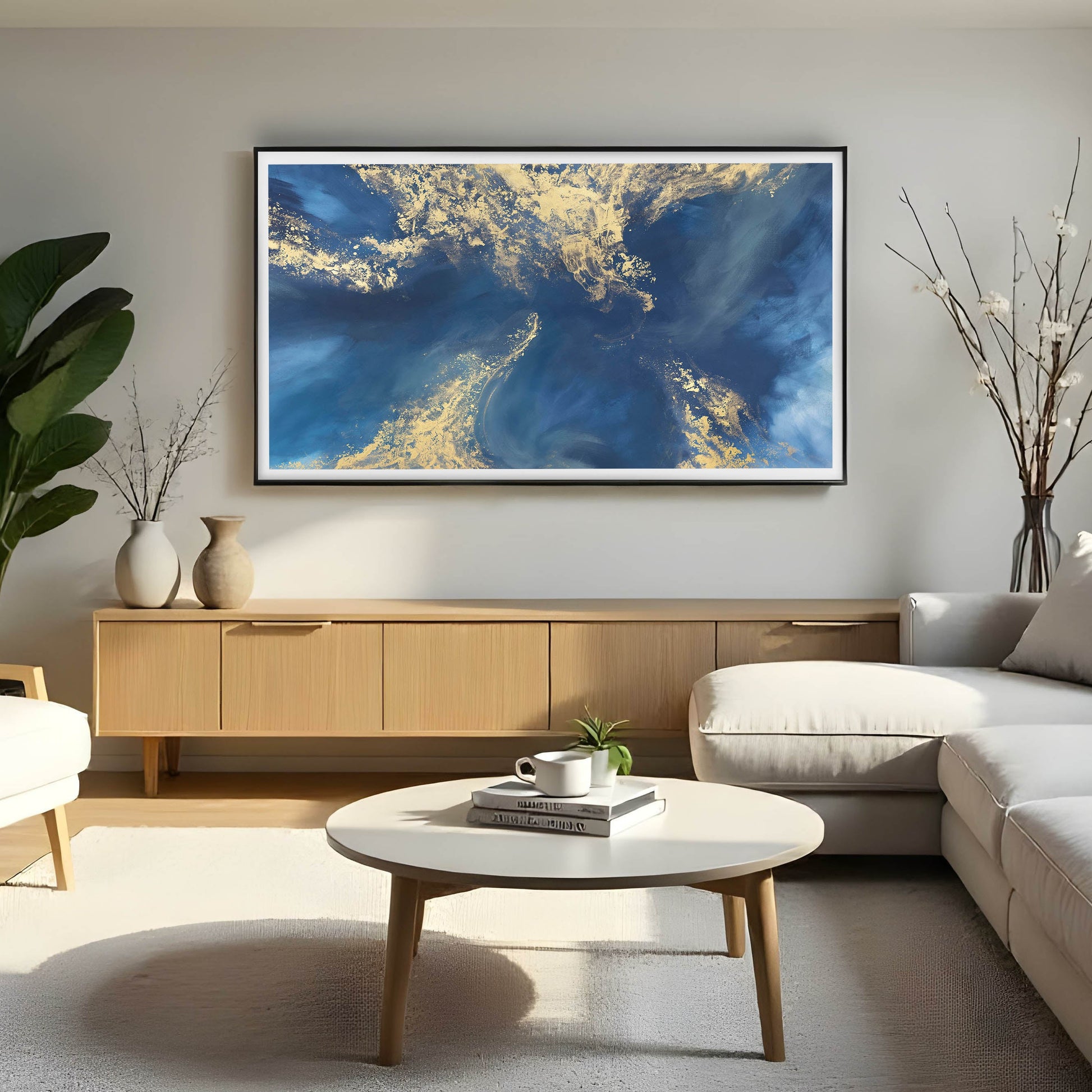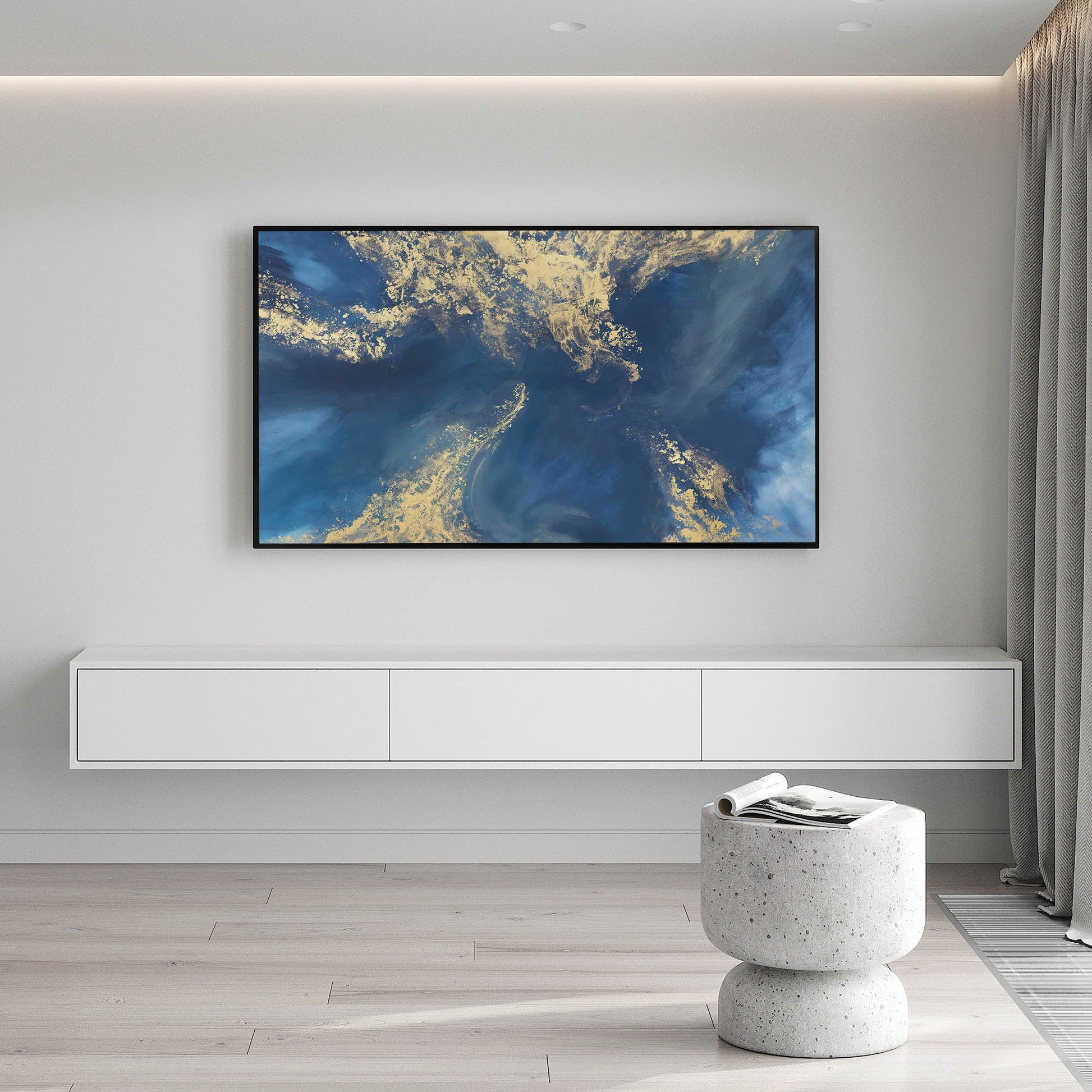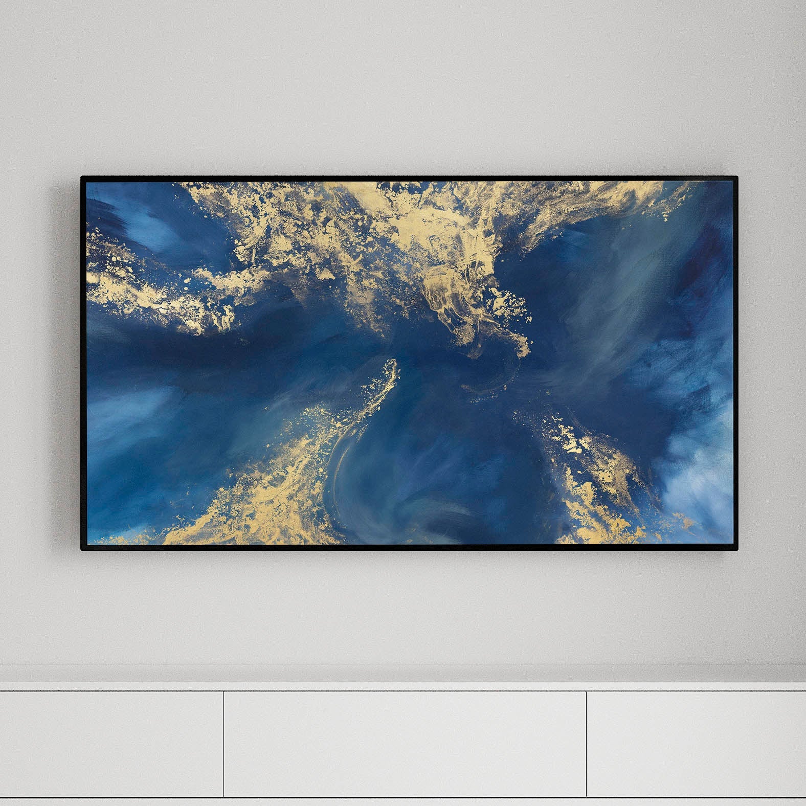 Primarily composed of a dramatic blue tone, this statement artwork draws the viewer into a mysterious and mesmerizing composition, making you want to keep looking.