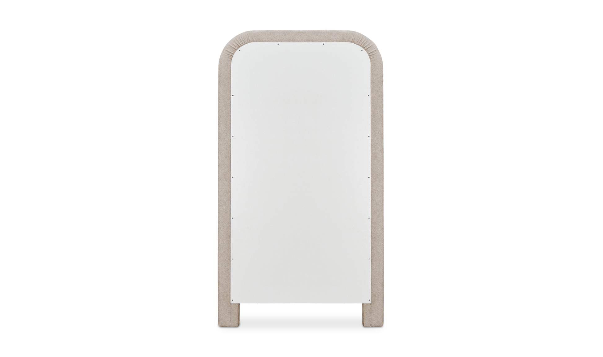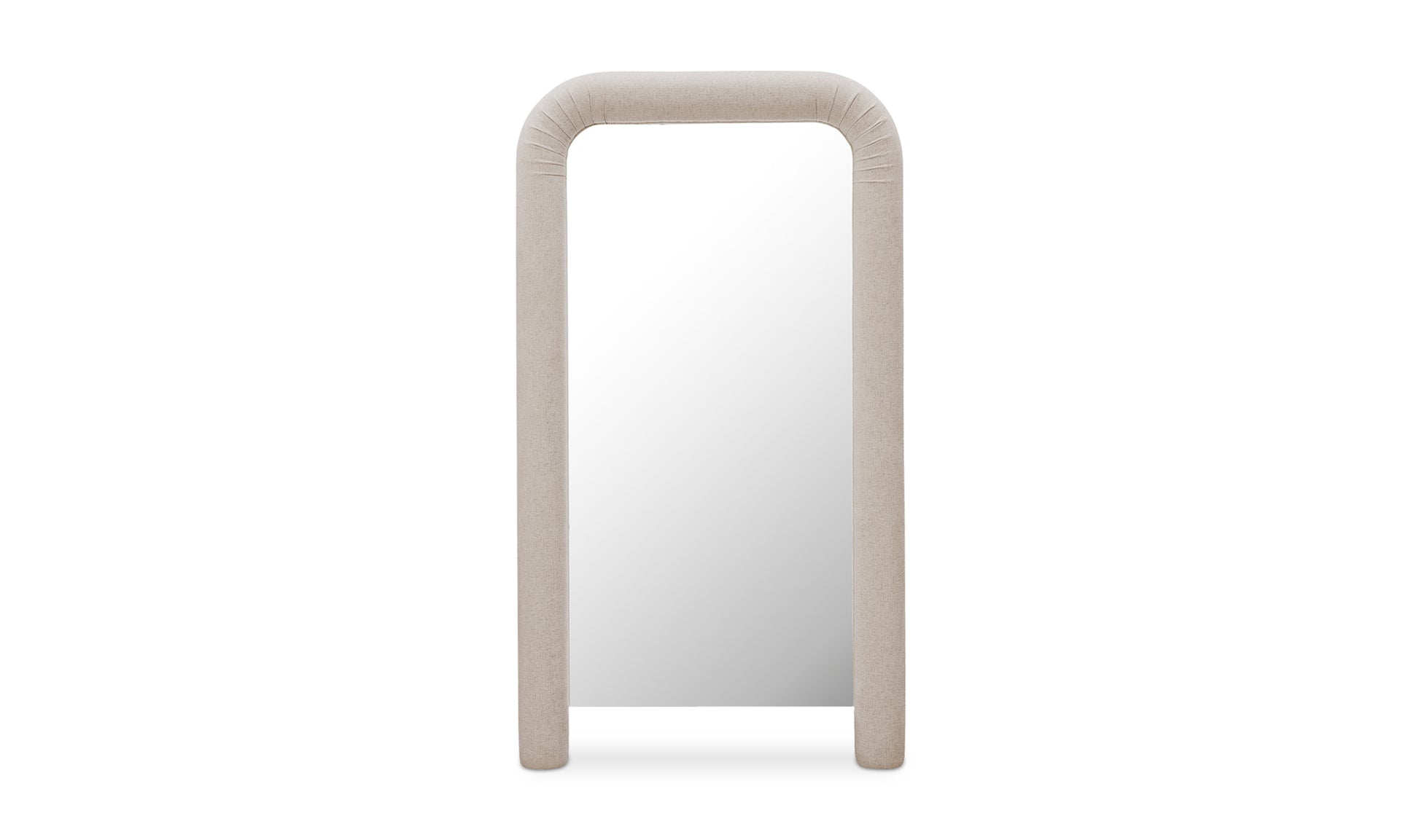 The Ellison Mirror is a striking floor-length statement piece, defined by its clean lines, soft rounded silhouette, and ruched fabric corners. Generously sized and beautifully upholstered, it brings sculptural elegance to bedrooms, dressing areas, hotel suites, or entryways. Thoughtfully designed for both form and function, Ellison combines comforting softness with architectural scale.