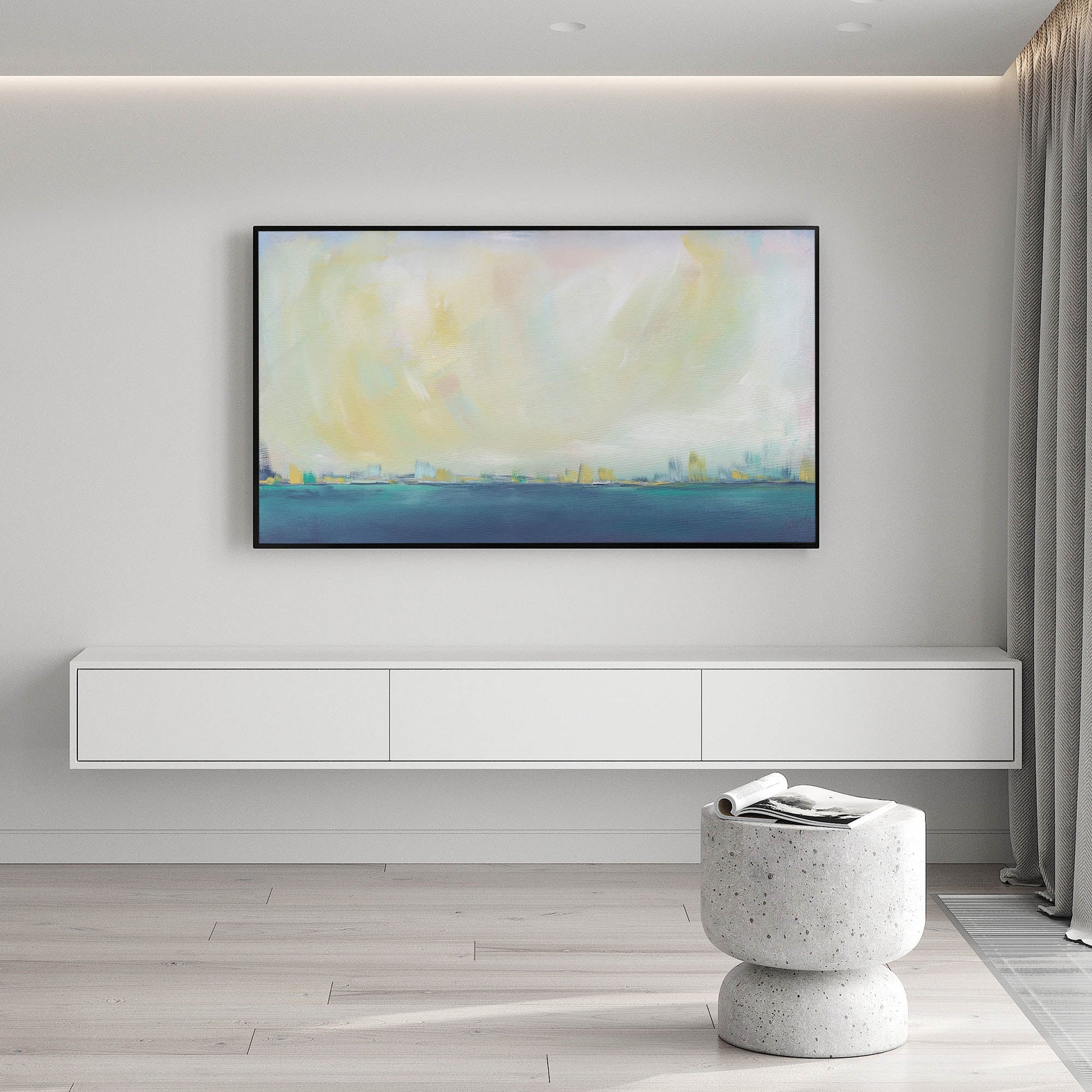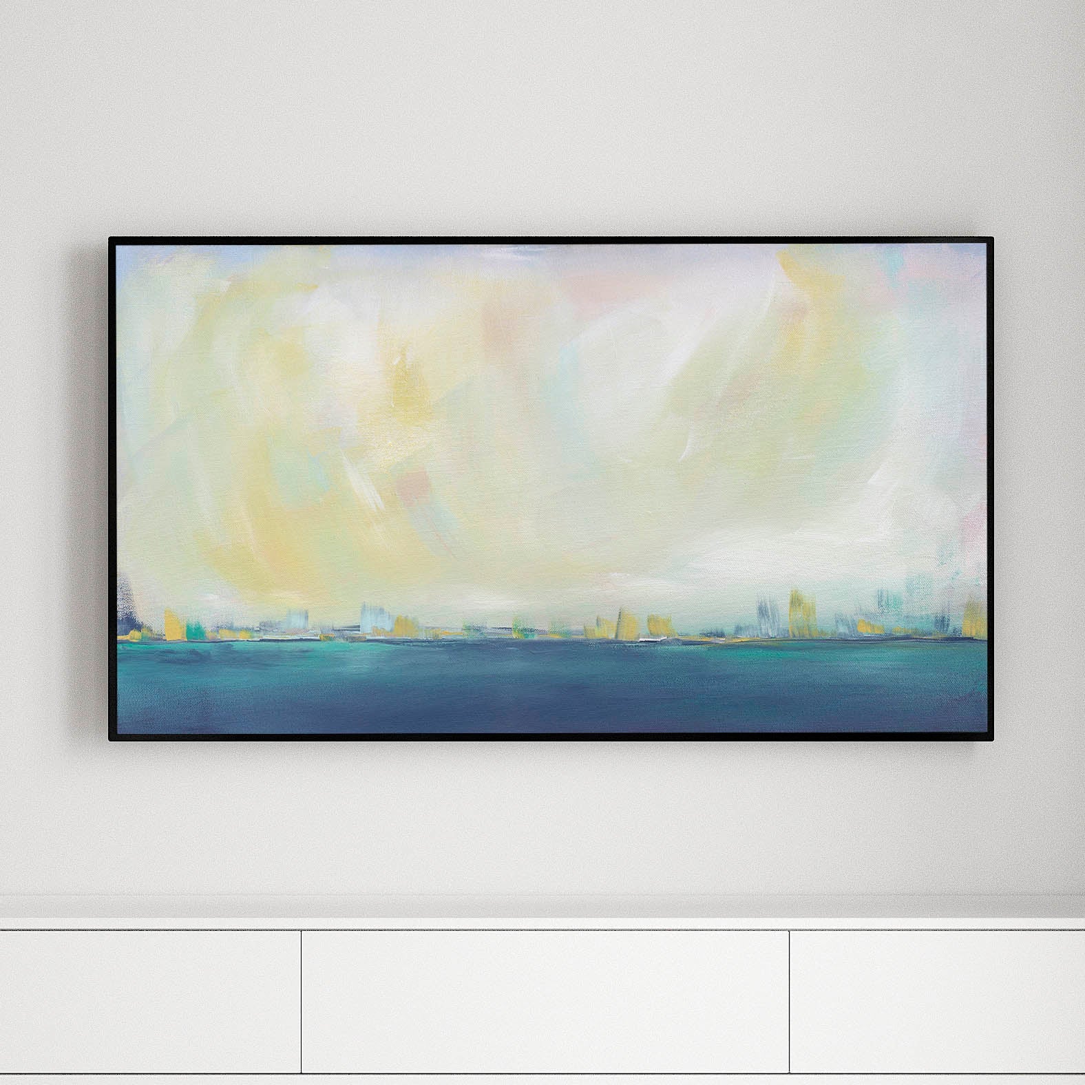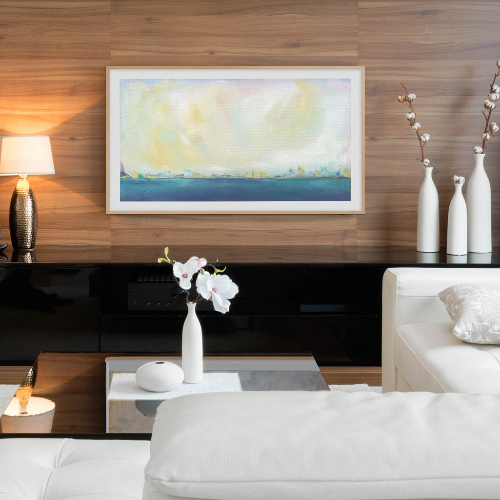Drift off into this dreamlike setting, just within reach. This abstracted landscape is soft enough to get lost in a daydream.