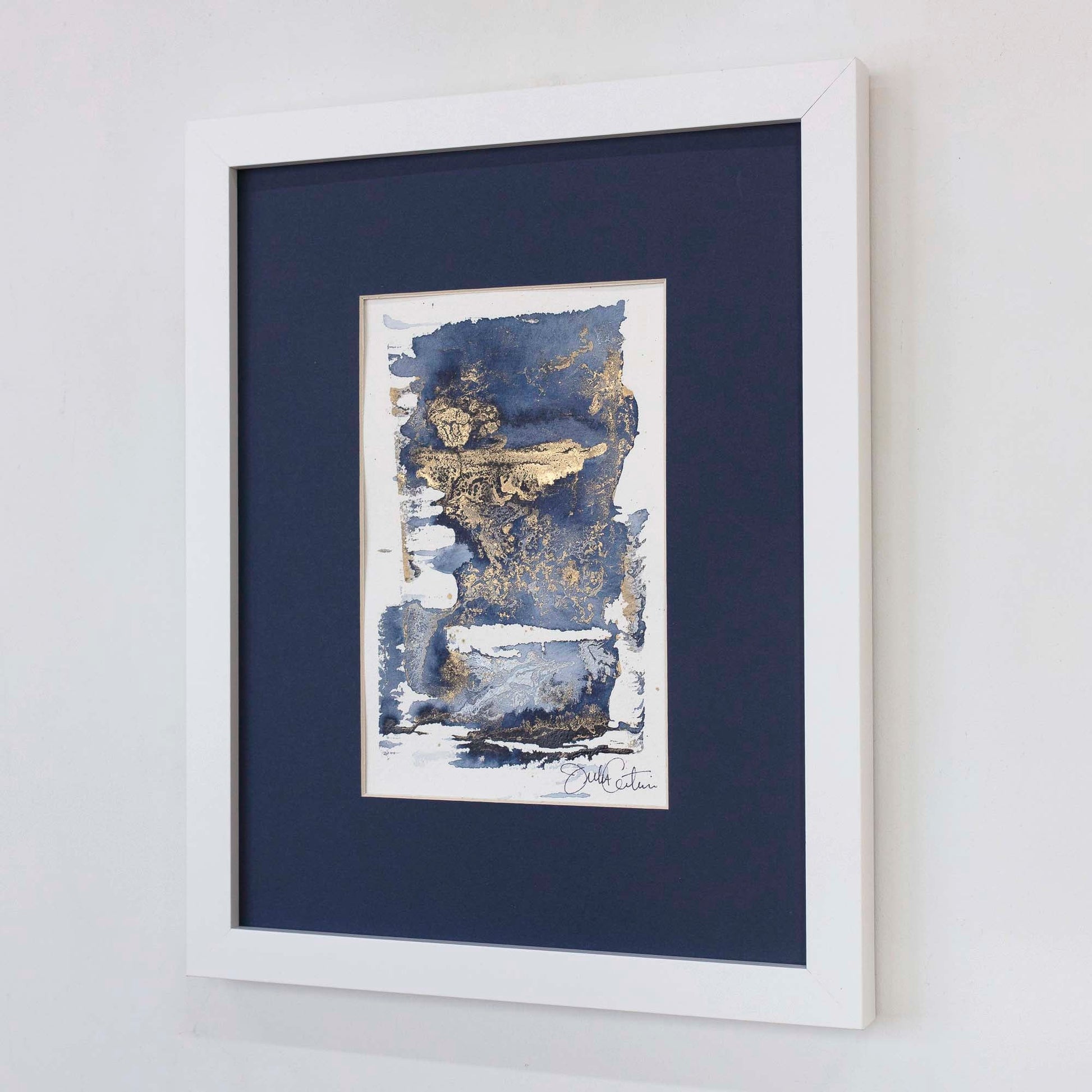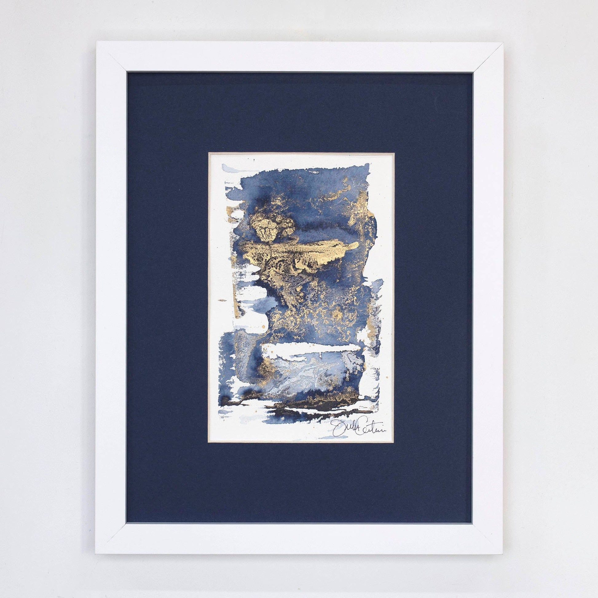 This original painting on paper will be matted in striking navy and finished in a custom white frame upon order. Signed on the lower right corner and ready to hang. Allow 2-3 weeks for framing.