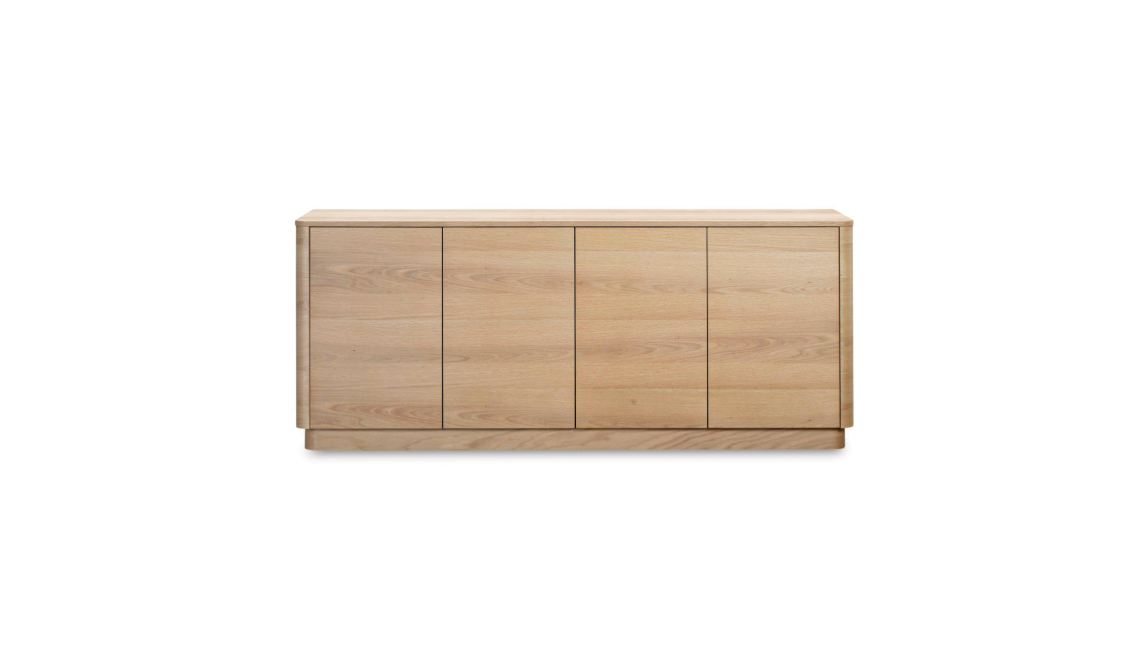 El aparador Round Off encarna el atractivo natural del diseño minimalista, combinando a la perfección la veta de la madera natural y una estética relajante. Sus esquinas suavemente redondeadas y sus cuatro puertas ofrecen un amplio espacio de almacenamiento, mientras que el enchapado de nogal sobre MDF y la base de madera de caucho celebran el carácter único de la madera. No se requiere ensamblaje para esta lujosa pieza que abraza la belleza de la naturaleza. Tenga en cuenta que cada pieza tendrá sus propias variaciones distintas.