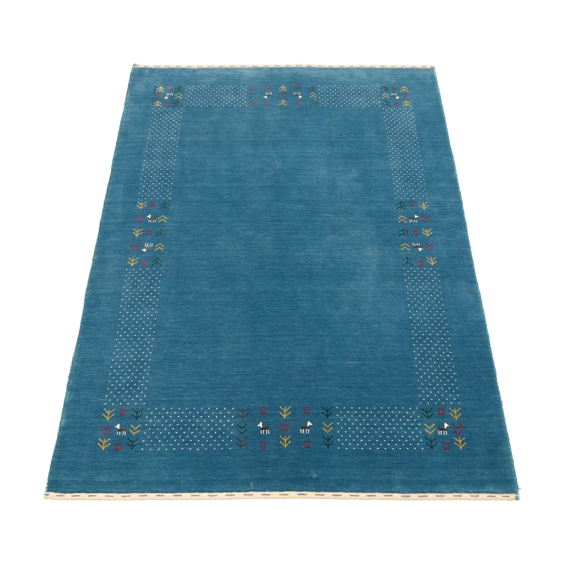 Solid Blue Border Design Hand Loomed Wool Area Rug