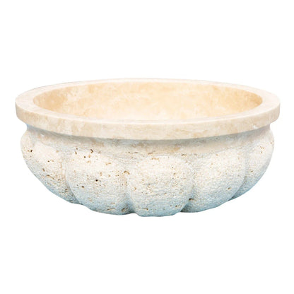 TCSC | Troia Light Travertine Natural Stone Pumpkin Shape Above Vanity Bathroom Vessel Sink
