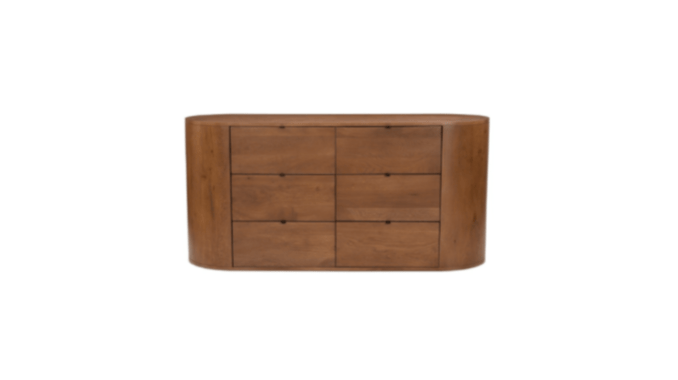 Full of natural appeal in solid oak, the Theo 6 drawer dresser features a curved, minimalist design. Beautifully simple and functional, this dresser features 6 drawers with soft-close glides and drawer safety stop.