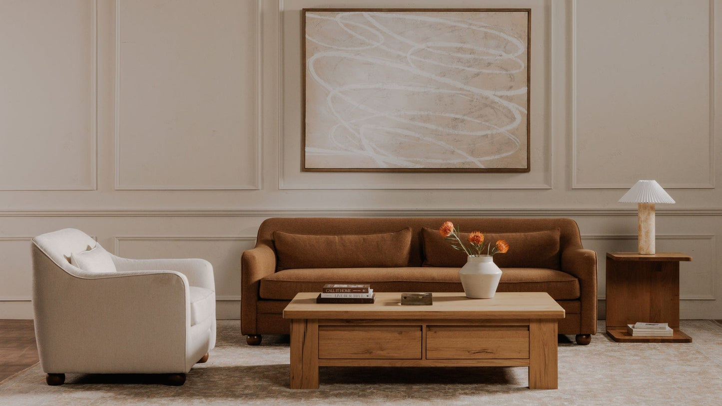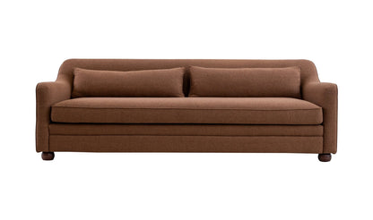 The Amira sofa offers warmth and comfort with its gracefully curved high back and subtly flared arms. Upholstered in durable C0 performance fabric with piping cushion details. The feather and fiber topped bench seat cushion creates luxurious repose. Generously proportioned lumbar cushions and solid wood feet complete this centerpiece.