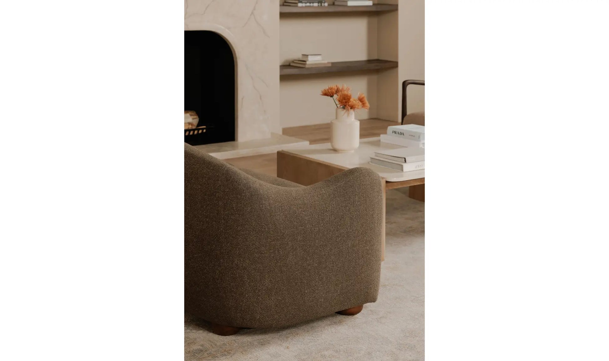 The Bria sofa's gently sloping arms and rubberwood feet, finished in rich, warm brown inspire a vintage charm, reimagined for contemporary living. Crafted with a removable high-density foam seat cushion and upholstered textured, flecked fabric, it offers supreme comfort.