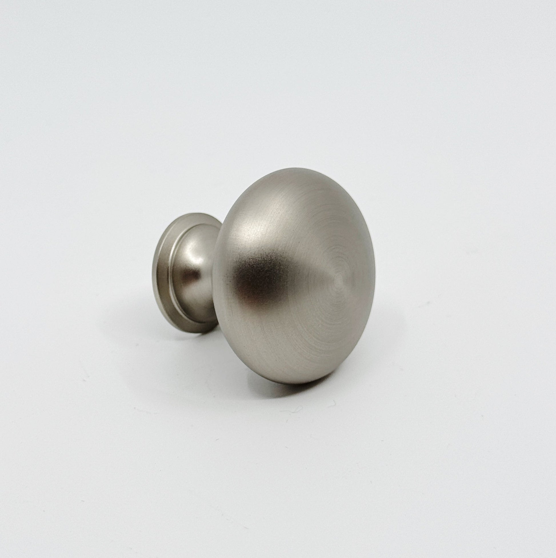 This contemporary collection of brushed nickel is made of brass and offers various styles including cup pulls, round knobs and cabinet latches. Additional matching items in the same finish are available on our site. Comes with screws for mounting.