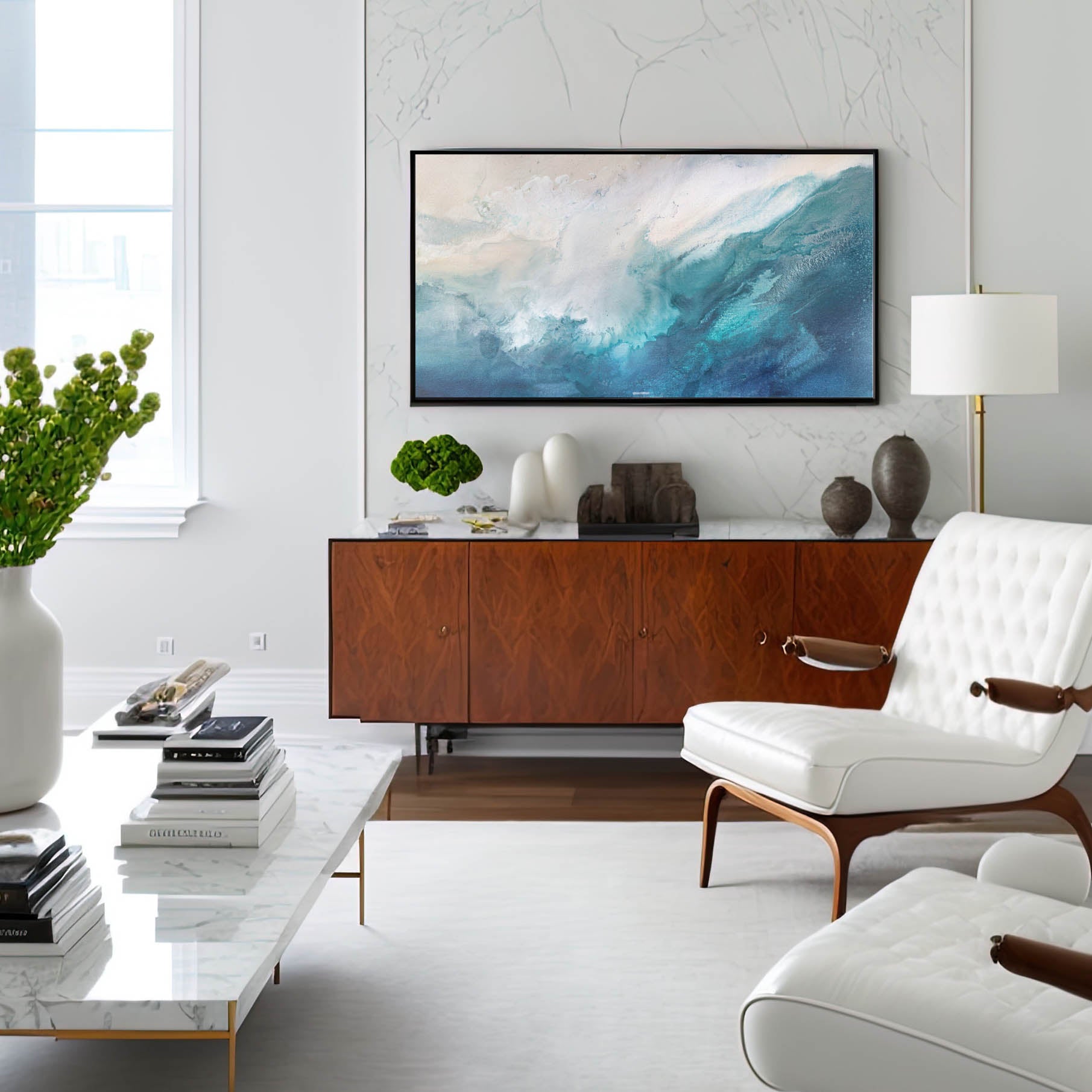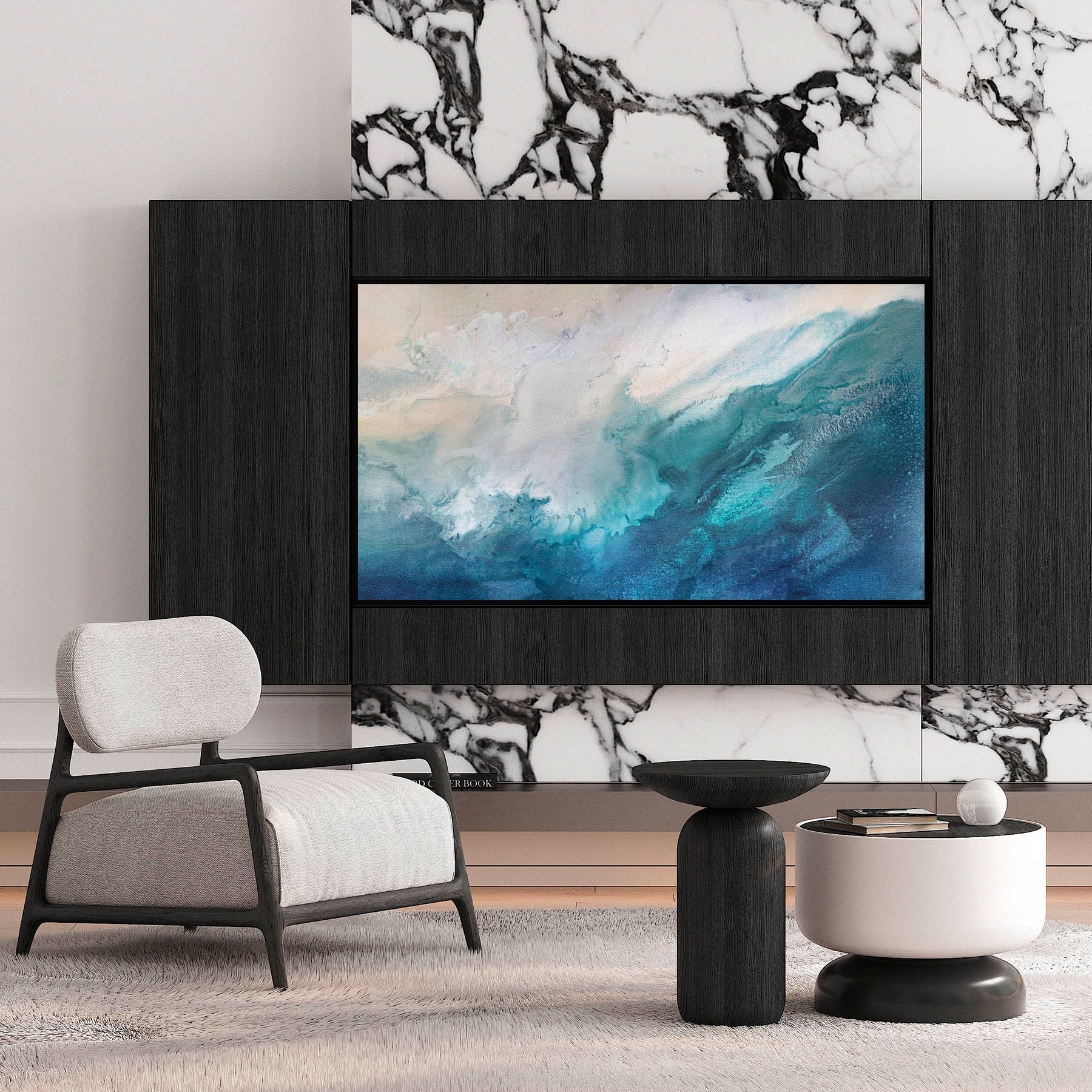 Inspired by my son’s favorite ice cream flavor, in this work my hope was to capture that striking and unreal shade of soft turquoise and mix it with all the good feeling that sunlight, summer and joy bring. The resulting creation — breaking surf tumbling into a dreamy abstraction of salty sea.
