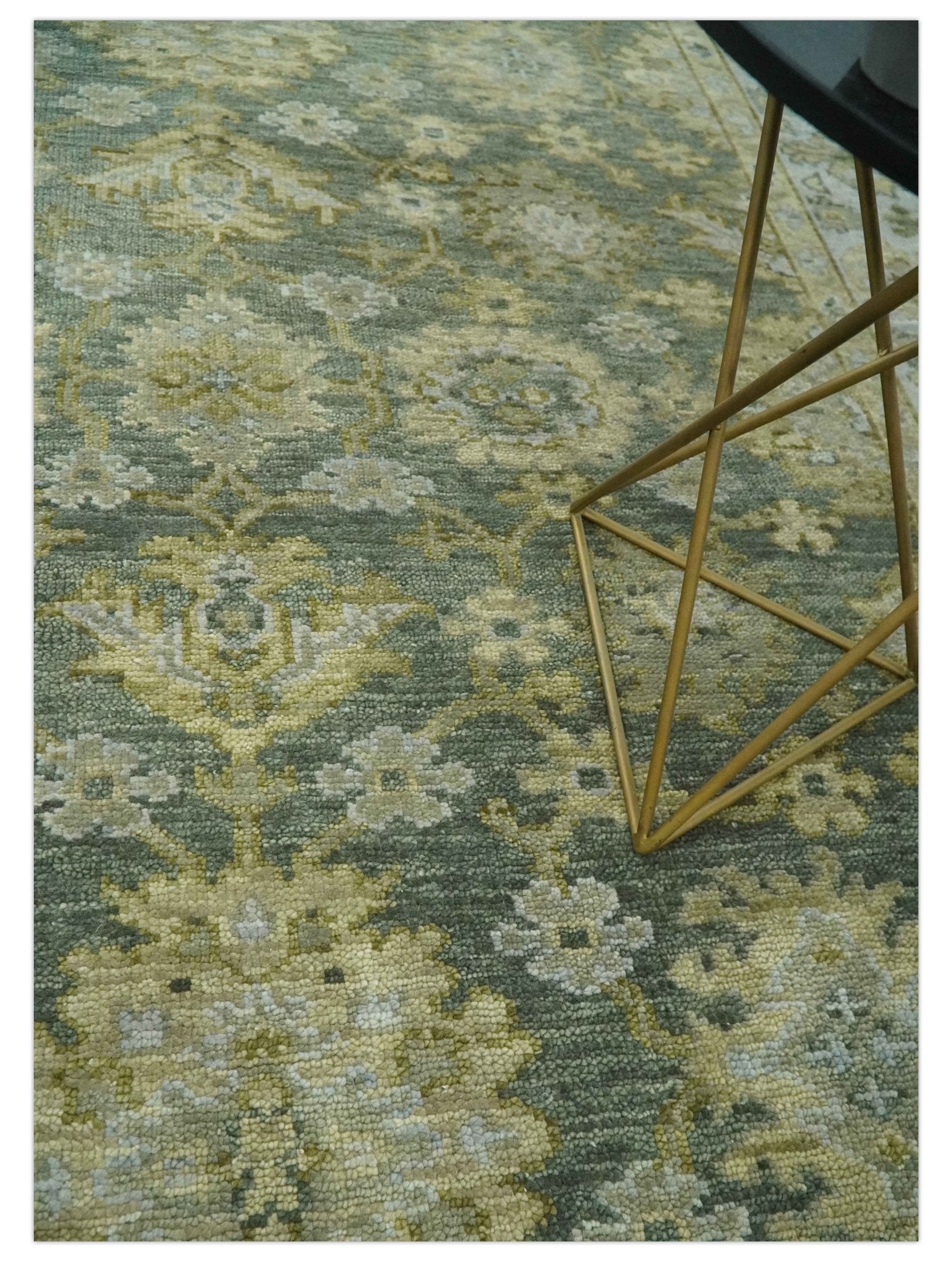 Custom Made Green, Silver and Olive Hand knotted Traditional Oushak Wool Area Rug
