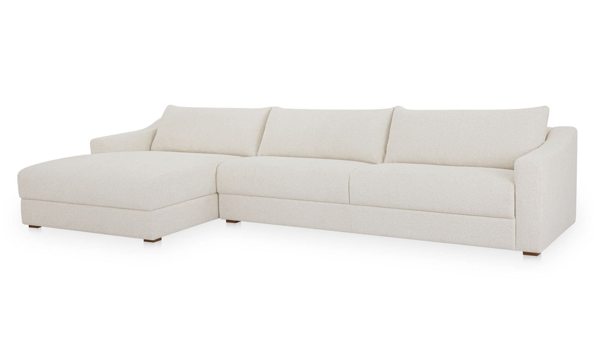 When your living room calls for more than a sofa. The Farrow Sectional combines deep, fiber-filled cushions with a gentle arm slope and piped edges for polish. Upholstered in flecked oat with a textured finish, it’s fully wrapped and grounded on an invisible base for a seamless look. Designed with the left-facing chaise, this sectional adapts from traditional to contemporary with timeless ease.