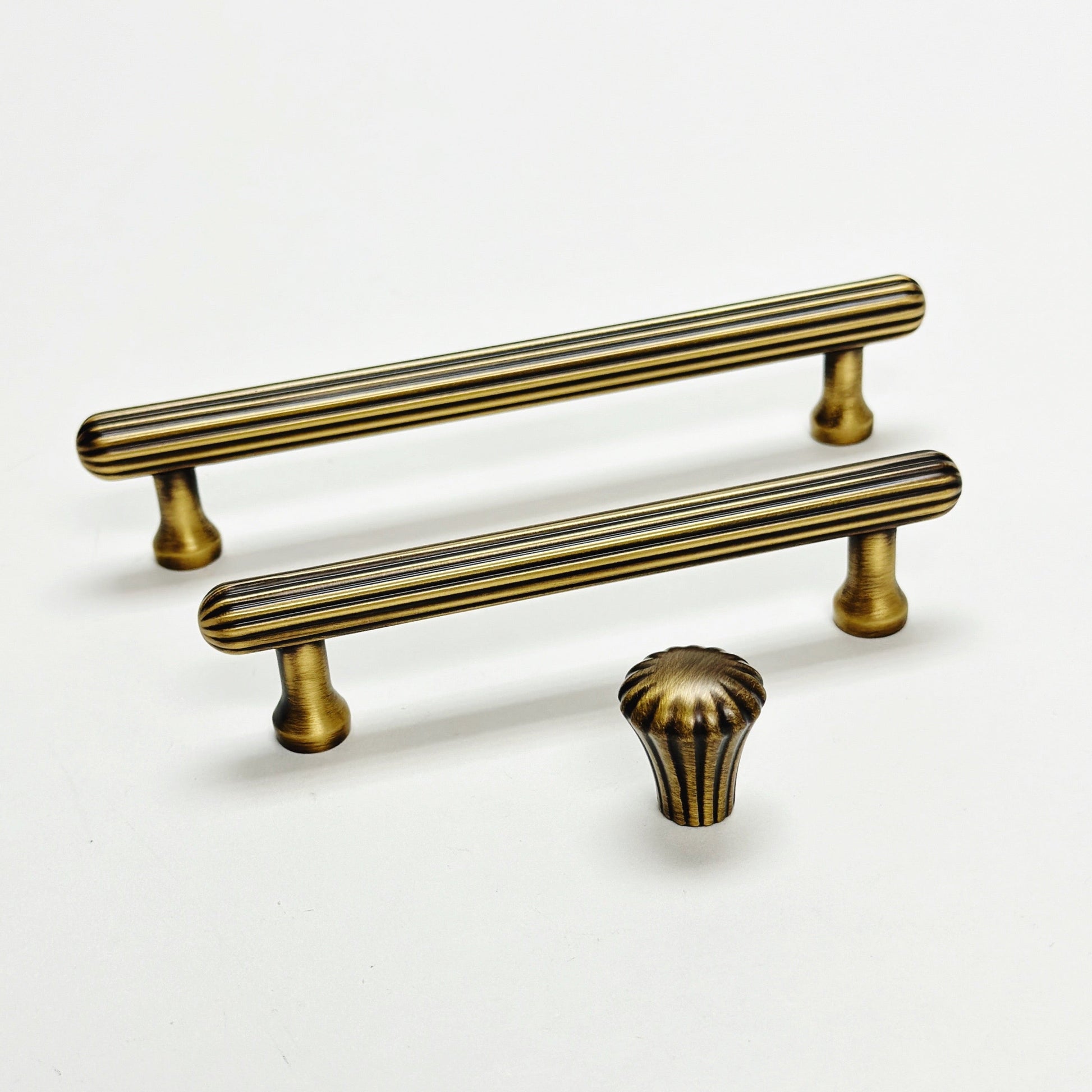 Fluted Antique Brass "Jewel" Ridge Cabinet Knobs and Pulls
