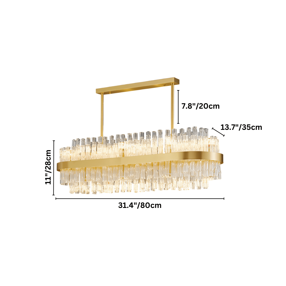 The Fylux Chandelier is a luxurious light fixture crafted from copper and adorned with a tiered glass lampshade, delivering refined brilliance and sculptural elegance. Its architectural form is available in both round and linear silhouettes, suiting varied spatial layouts. Ideal for installations above dining tables or as a bedroom centerpiece, it blends symmetry with a warm, ambient glow. The brushed gold framework adds a contemporary edge while showcasing artisanal glasswork. This modern chandelier transforms interiors with layered radiance and design-forward presence.