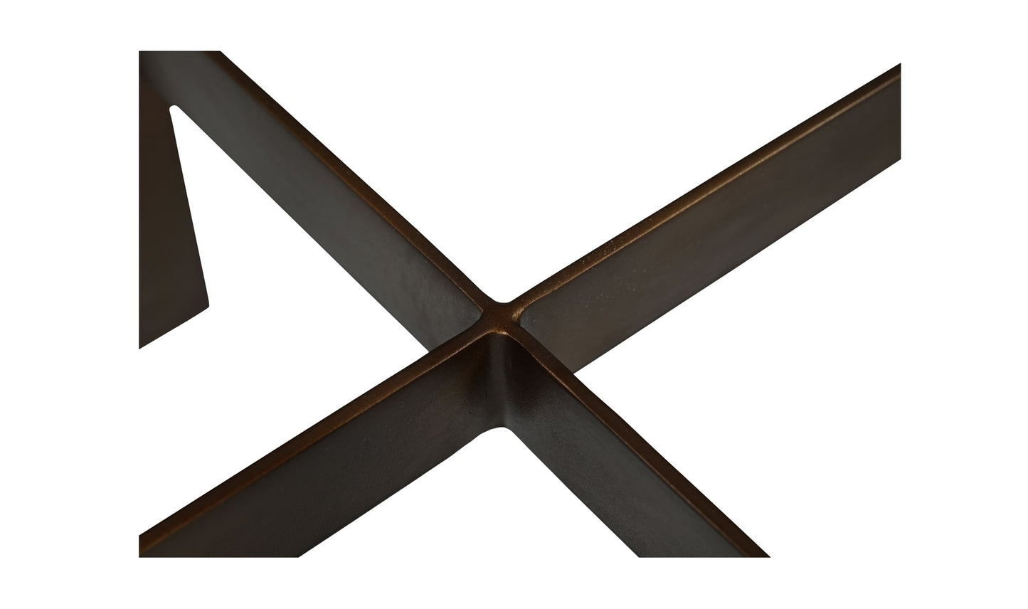 - Several design details including metal rim around edge of marble tabletop, curvature from leg to base, & buckle-like details on the stretcher wrapped around each of the four legs
