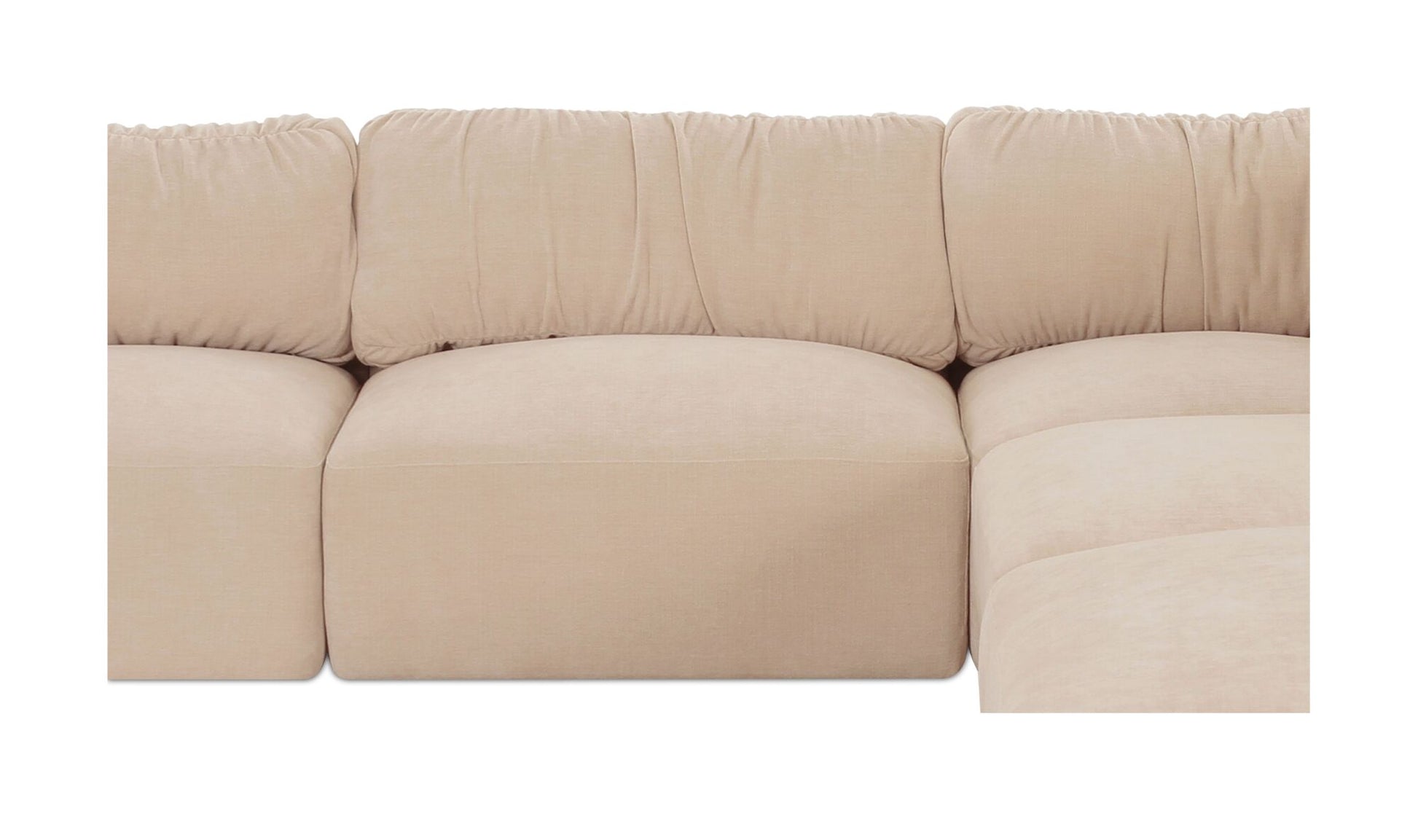 Proof that relaxed can still look refined. Matina makes the case for lived-in lounging. With a clean frame and sculptural curve, it keeps things structured, then softens it all with an oversized cushion designed to sink into. The plush chenille and purposefully wrinkled finish give it that relaxed, vintage-y feel right out of the box. Whether as a setup or customized to your own taste, it’s all about comfort with character.