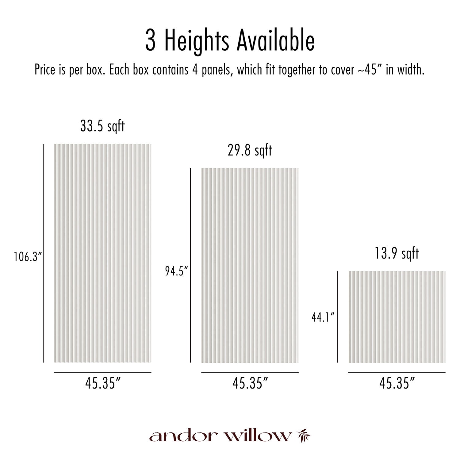 Full Heights and Half-Heights: 8' and 9' lengths are perfect for cladding walls, ceilings, and large-scale projects, while our 44" half-length panels are perfect for bar islands, half-walls, furniture projects and more.