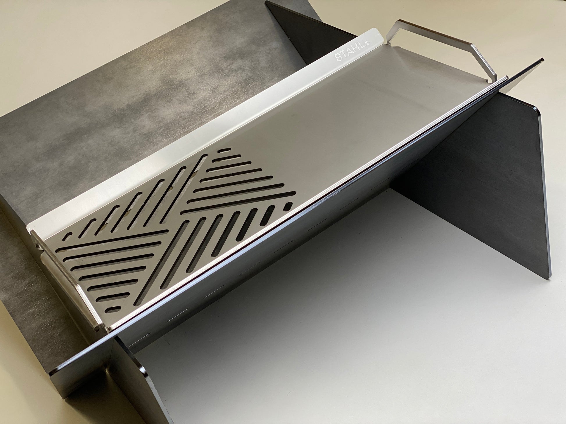 The Stahl Grill brings everyone together. Barbecue on an open flame or sauté on the hot plate. Then take the Grill off for an evening around the fire. The Stahl Grill is designed specifically for the (wood burning) Stahl Firepit.