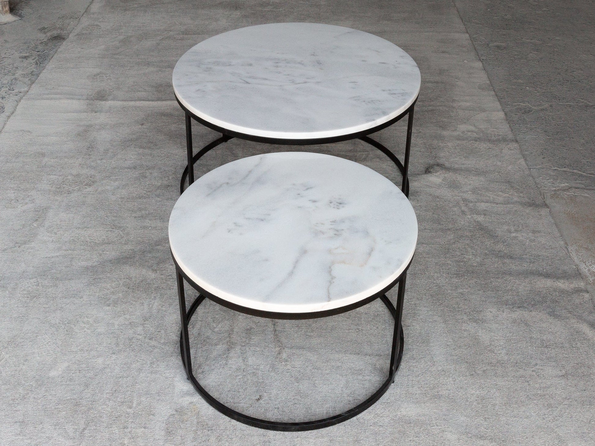Carrara White Marble Nesting Coffee Table Round Set of 2 Polished and Eased Edge offers,