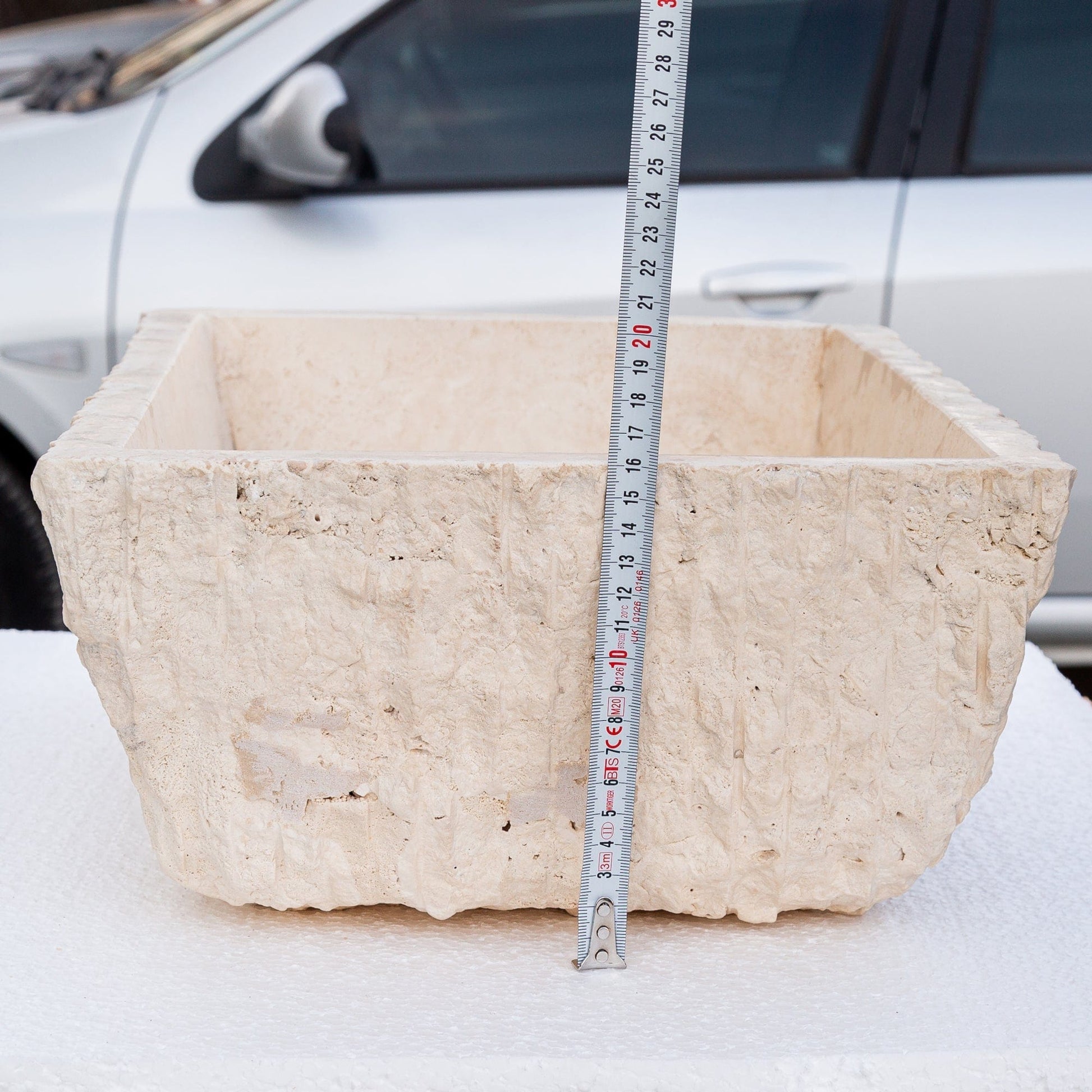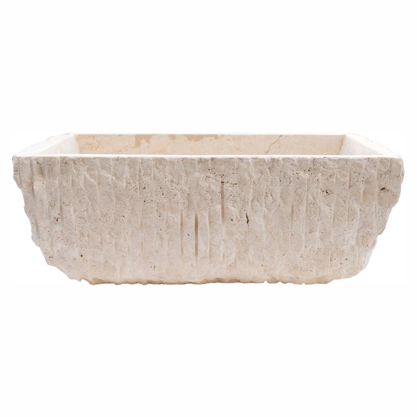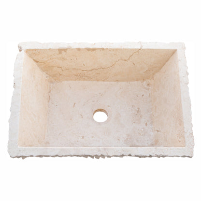 TCSC | Troia Light Rustic Travertine Rectangular Above Vanity Bathroom Sink Hand Chiseled Exterior