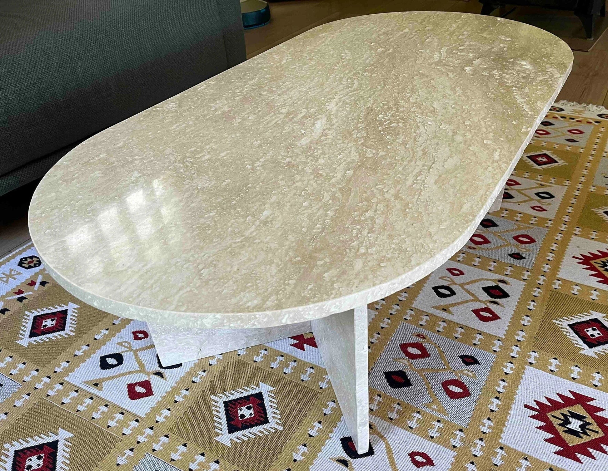 Troia Light Travertine Oval Shape Coffee Table Filled and Polished (W)24" (L)48" (H)16" offers,