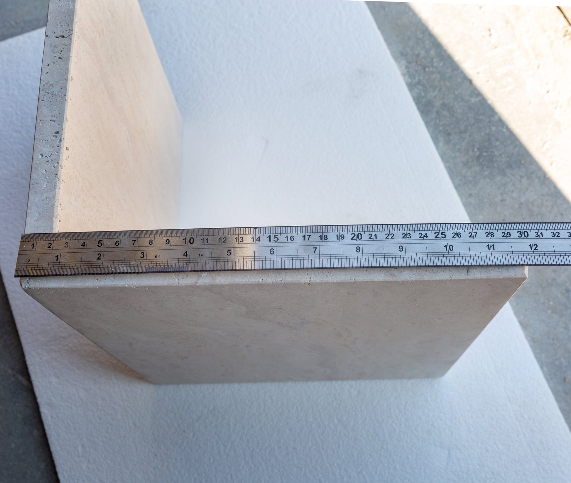 - Every travertine coffee table is handcrafted by our Turkish specialists naturally and chemical free with classic and sleek design, this end/side table top has a smooth, non-porous surface with a nice looking and more durable marbleized layer. There might be small variation on the sizes and they might not accepted as a defect.